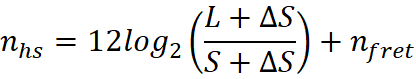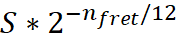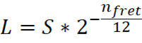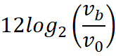 frequency (Hz) of each note is calculated by: