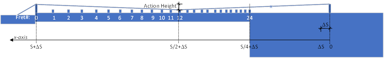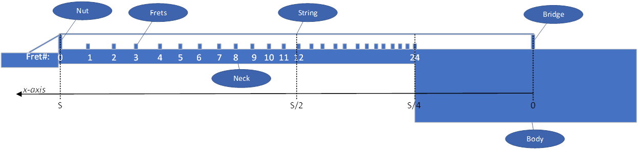 0 (at bridge) to S (at nut) |