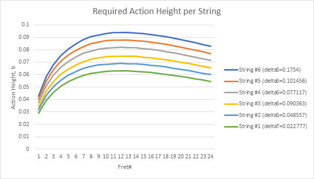 From equations above, to keep the guitar intonated at a given fret, the bend necessary is calculated as: