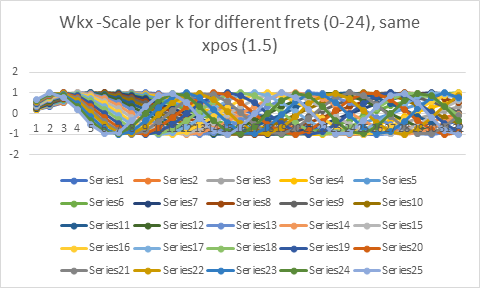 This shows that notes from different strings present themselves with a different signature (frequency and amplitudes). However, these signatures are also modified by many different parameters (time since strum, pickup placement, pickup height, action height, etc.), and are summed together with many shared harmonic frequencies. This makes it a difficult problem to solve with a traditional signal processing algorithm.